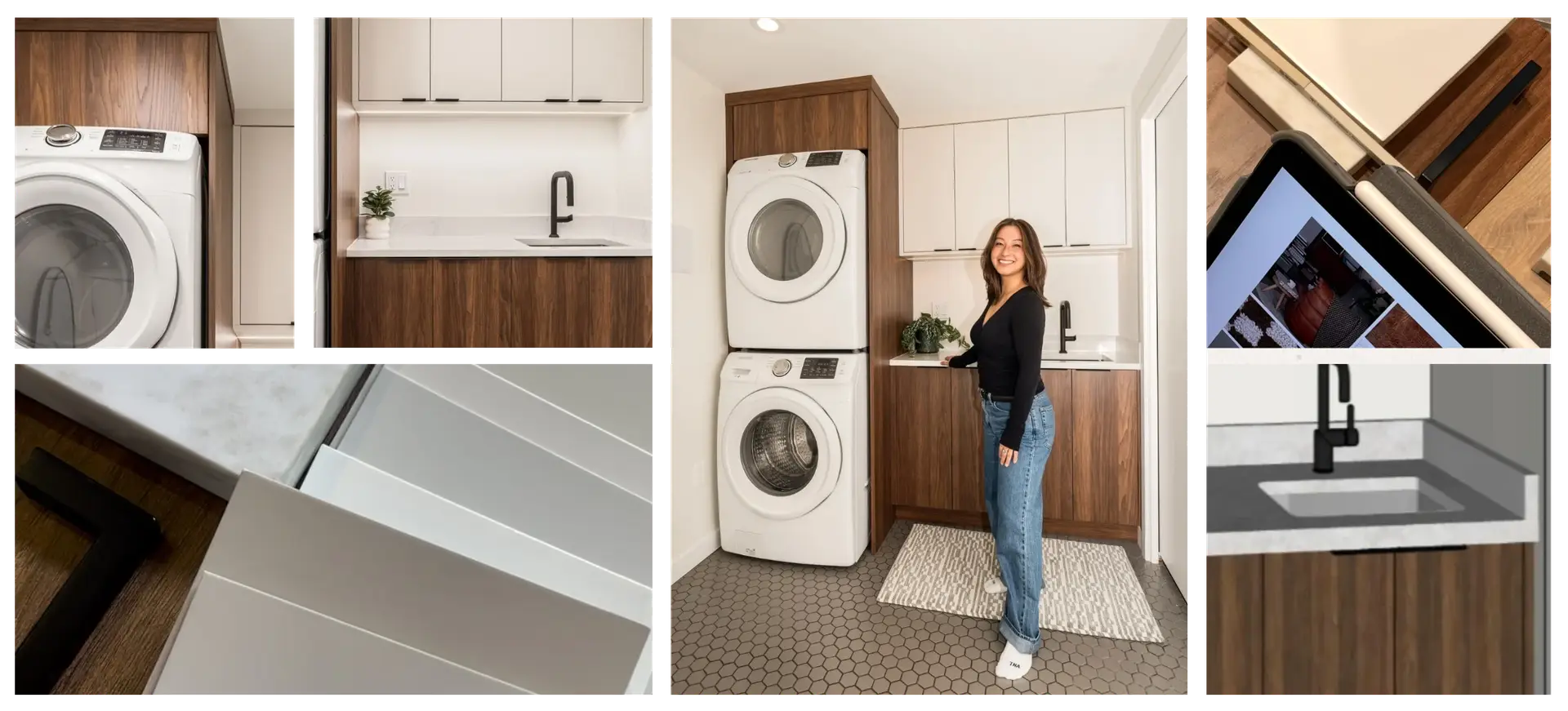 Completed laundry space demonstrating application of selected materials and finishes.